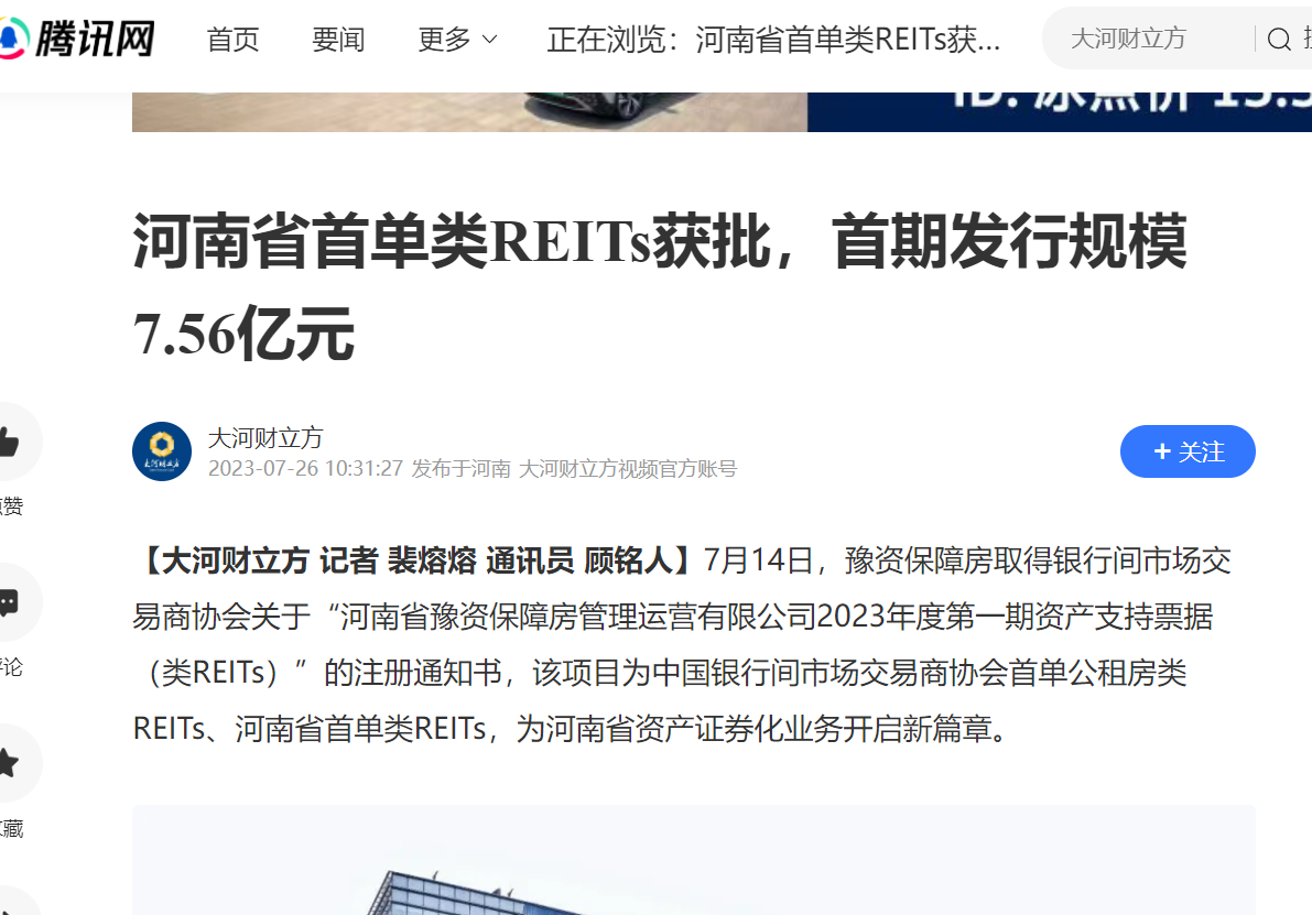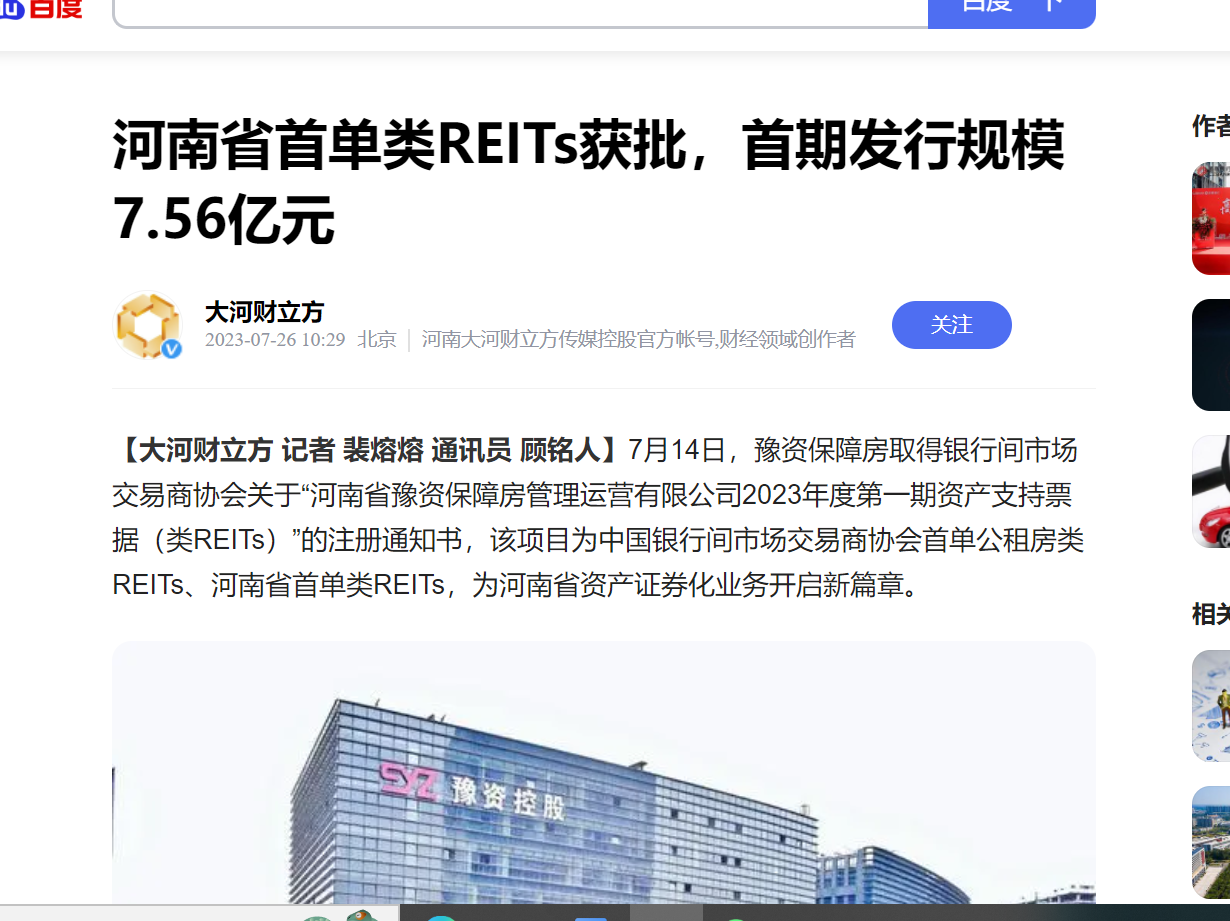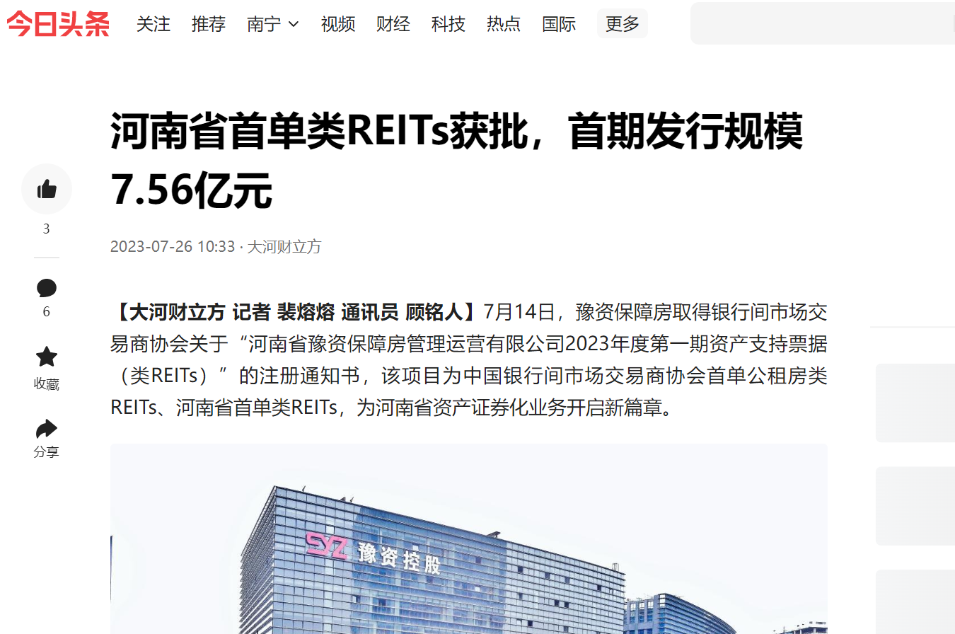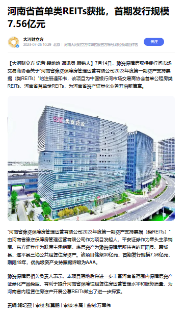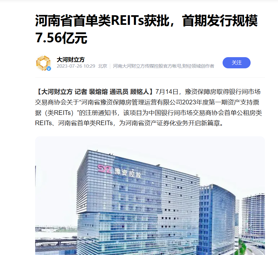 全省首單!豫資保障房類REITs項目正式獲批!引多家省級媒體轉發