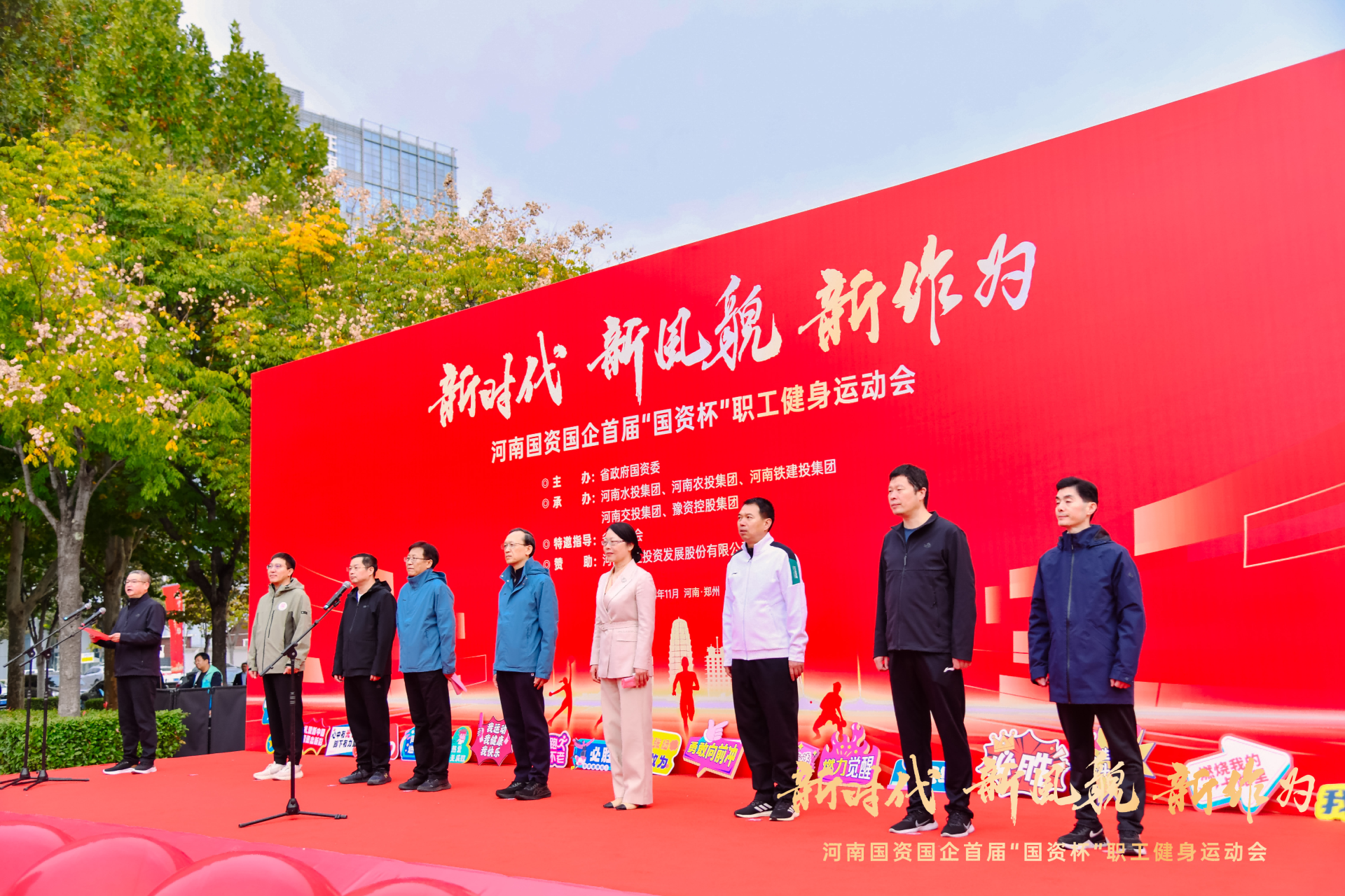 11月9日上午,河南國資國企首屆“國資杯”職工健身運動會,在鄭東新區龍子湖畔盛大開幕。省政府國資委和相關省屬國有企業25支代表隊齊聚一堂,共同參與這一體育盛事。豫資控股集團黨委副書記、董事吳國學帶領集團30余名隊員代表參加開幕式。